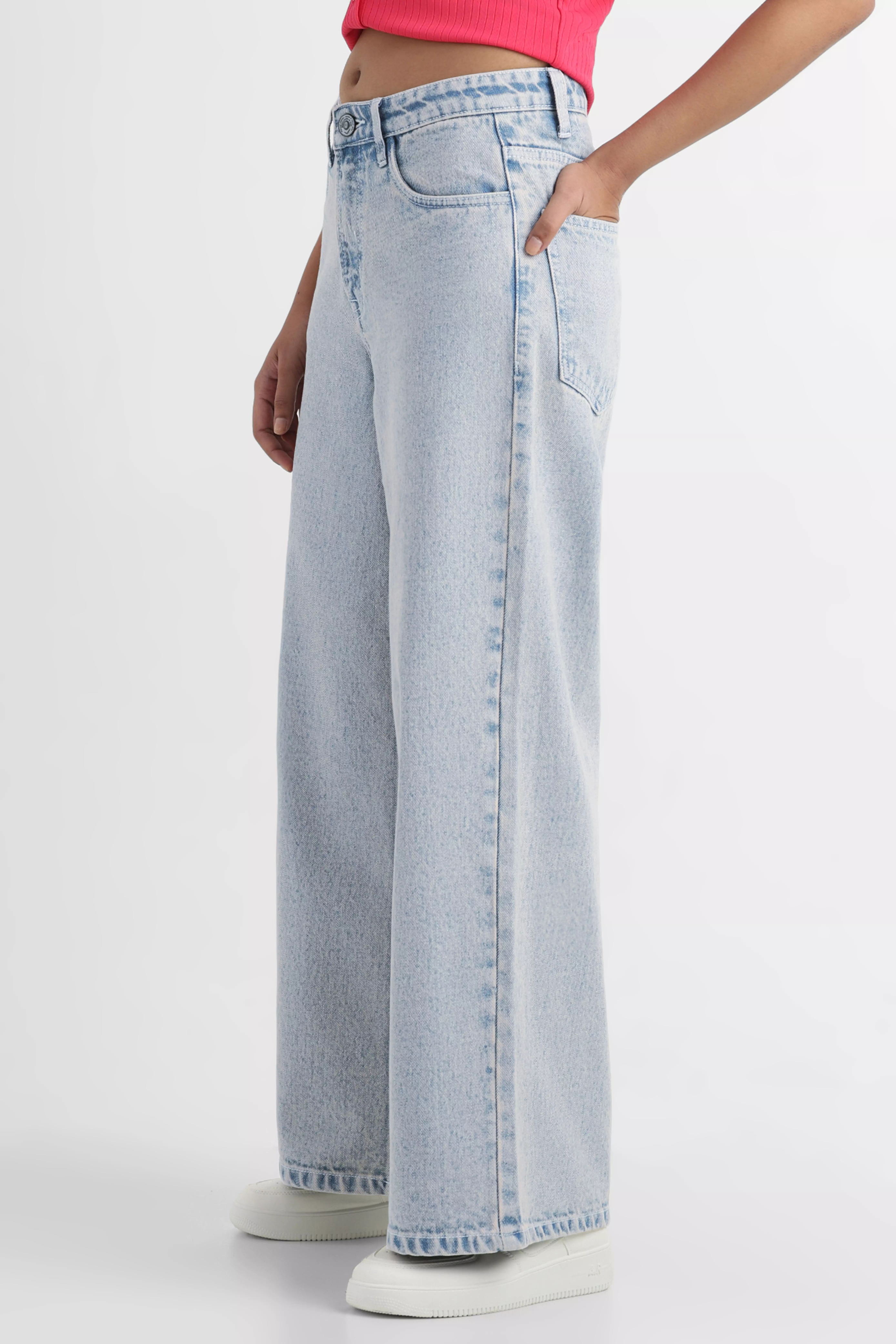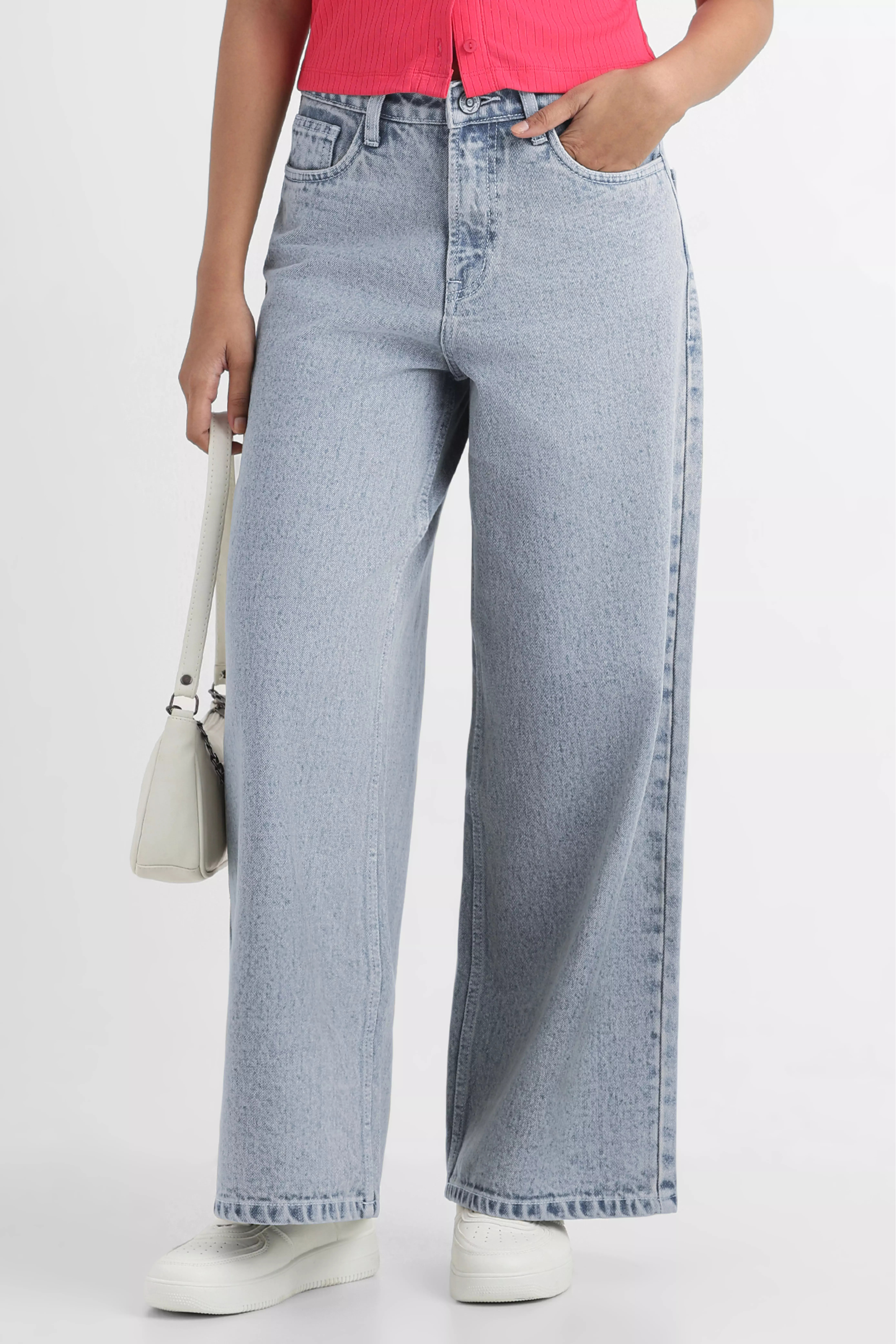Slayin these chic, baggy wide-leg tinted jeans. Flex your style all day with majorCool-girl Energy.